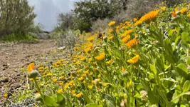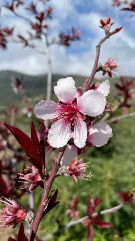 A circular hike through almond trees. The trees are in full bloom in January and February.