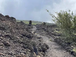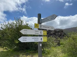 We started the trail in Santiago del Teide, following PR TF43.3 towards Chinyero, although we didn’t go all the way to Chinyero this time. We reached the lava stream from the Chinyero eruption in 1909, walked along it, but then followed the signs to Las Manchas PR TF 65, going around Montanas Negras. However, our goal wasn’t to reach Las Manchas, but to descend north of Las Manchas, closer to Santiago del Teide where we left the car. Afterwards we had to walk for a while along the road TF 375.