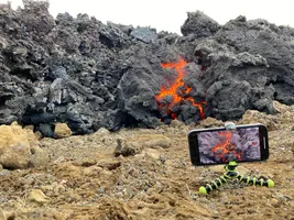 The even more mind wrecking experience was the change in lava composition that you can see above. One day the lava looked one way, and the next day it had changed. With the chemical composition change, the density also changed. The lava was now flowing at the speed of our time-lapses. The hardened lava looked differently, too.