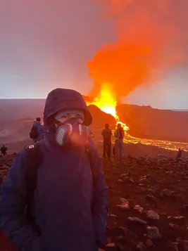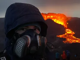 The wind was the biggest threat. Not only that it intensifies cold, but it can get dangerous if it blows from the volcano toward us. The volcano gases can be dangerous, and the search and rescue team was constantly measuring the levels. They all carried gas masks with them for emergency situations, and so did we. One night the wind direction was dangerous, there was also a lot of smoke in the air, and some of the search and rescue members were wearing their masks. We considered it wise to do the same, although their devices still blinked green.