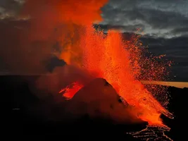 Another dangerous and rare event that we witnessed was a lava tornado. The cold air and wind, combined with the hot air at the surface of the lava, create the perfect conditions for a tornado to form. A swirl formed several times on the surface of the lava, and it started throwing hot lava around it. It was scary, but we were up a hill and this happened down in the valley where lava was flowing. It posed no physical danger for us, although it was extremely scary.