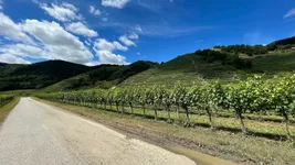 You probably know us by now. We need a bit more adventure and uphill, especially with an e-bike. Therefore, we combined this route with parts of another cycling route called Höhentour 11 - Mühldorf-Route. We ended up on hills with rolling vineyards, picturesque landscapes, and fields of pink poppies.