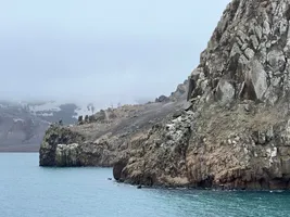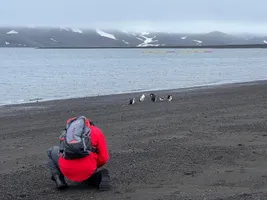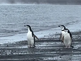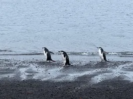 Our second stop was on an island that is different than anything else we have seen in Antarctica. The island is the caldera of an active volcano in which the ship can sail inside. The ground is warm and therefore there is no snow. The water at the shore is was also warm, even warmer than our hands. People used to dig holes on the beach here to bathe in hot water, but that is now forbidden. The evaporating hot water is what creates fog on the ground.