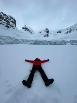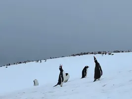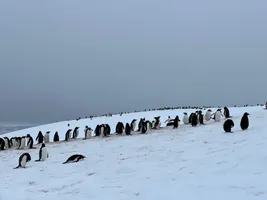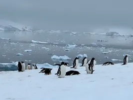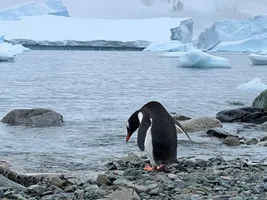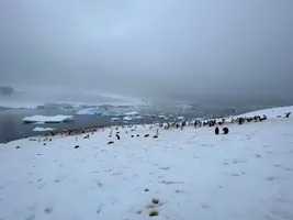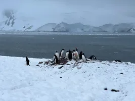 We had a nice view over Paradise Bay, although cloudy and windy. The only wildlife we saw was a Gentoo penguin on a piece of ice on the shore. Otherwise, nothing special for us compared to the crew members who did a lot of work to carve steps in the snow for this landing. We wish we could join them.
