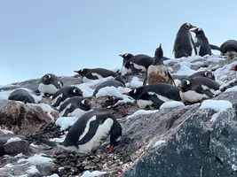 In the morning we got to see for the first time hundreds if not thousands of penguins on D’Hainaut Island at Mikkelsen Harbour. There was a Weddell seal sleeping, lots of Gentoo penguins and some snowy sheathbill birds. The penguins seemed very well and active, but to our surprise, the expedition team said that they are not doing very well because their nesting areas are still covered in snow.