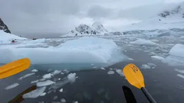 This was our first kayaking experience in Antarctica, and I have to admit that I never expected to kayak through brushed ice, especially on the first day of Christmas. It might sound dangerous, but we did not perceive it as such. Neither we nor anyone else in the group felt unsafe. Kayaking at Cierva Cove was one of our favorite experiences in Antarctica and we have written an entire article about kayaking in Antarctica that you might want to check out: