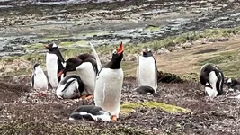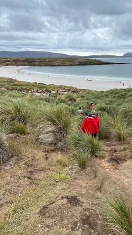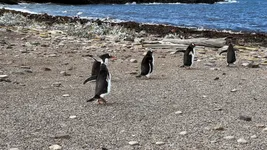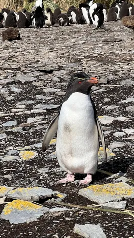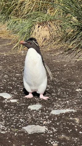 The landing was on a beautiful white sand beach. The weather was too warm for our clothes, but the high wind was extremely annoying. We’ve seen different plants and grasses, some goose, Magellanic penguins, and the Rockhopper penguins that made our day. They have a cool haircut and demonic eyes, and we could have stayed for hours to observe their behavior.
