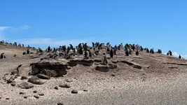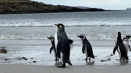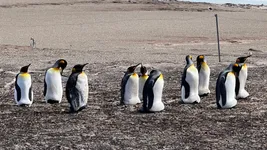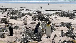 Most of the King penguins were sitting on their eggs, while others were molting. Those with weird, fluffy feathers are not chicks, but adult penguins that are molting.