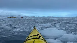 The plan was to do a zodiac cruise here, but we signed up for kayaking. We would almost always opt for kayaking rather than zodiac cruising. Unfortunately, on the Silver Cloud ship from Silversea, they have only 12 spots available for kayaking, and if more people want to kayak they do a lottery. On other ships, like Aurora Expeditions, you pay for a kayak in addition to your suit and you can go kayaking each time if you want. If you pay for a kayak, you are sure that they will carry a kayak just for you.